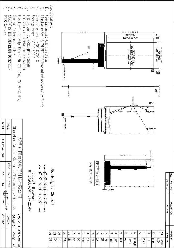 5寸TFT IPS型 480*854分辨率 MIPI接口 可加TP触摸屏 液晶显示屏