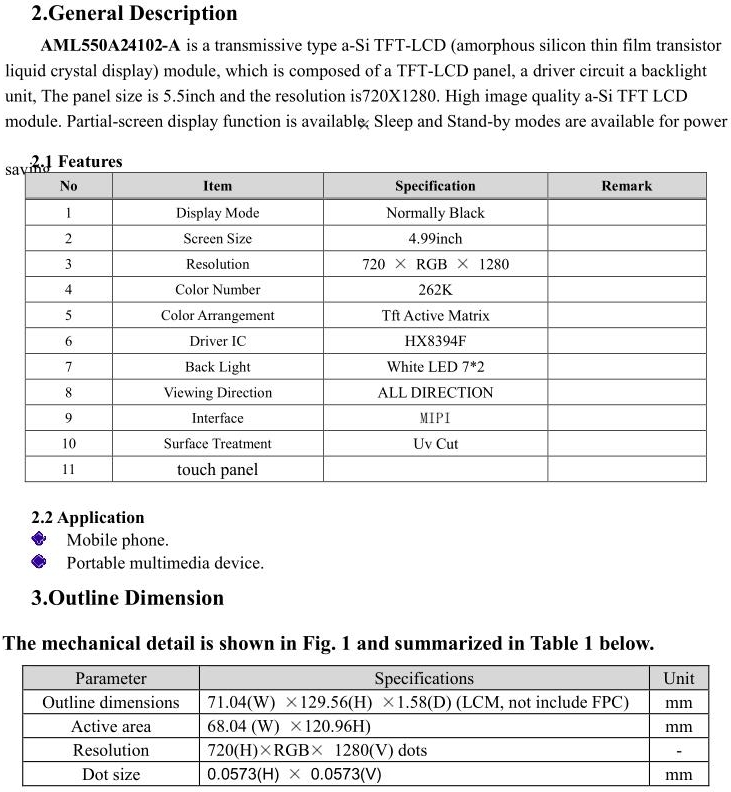 5.5寸屏 TFT LCD屏 720*1280 MIPI 可带TP触摸屏 IPS液晶显示屏