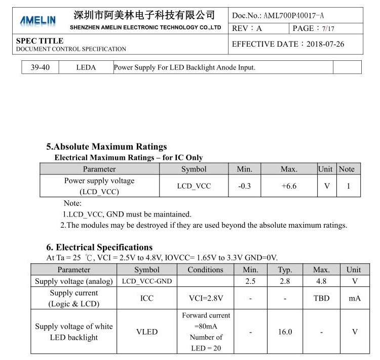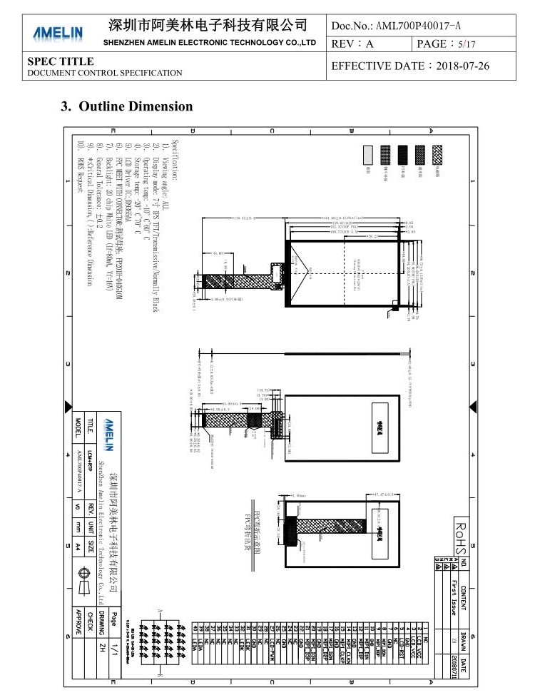 高清7寸LCD显示屏模组高占屏比mipi接口800x1280分辨率