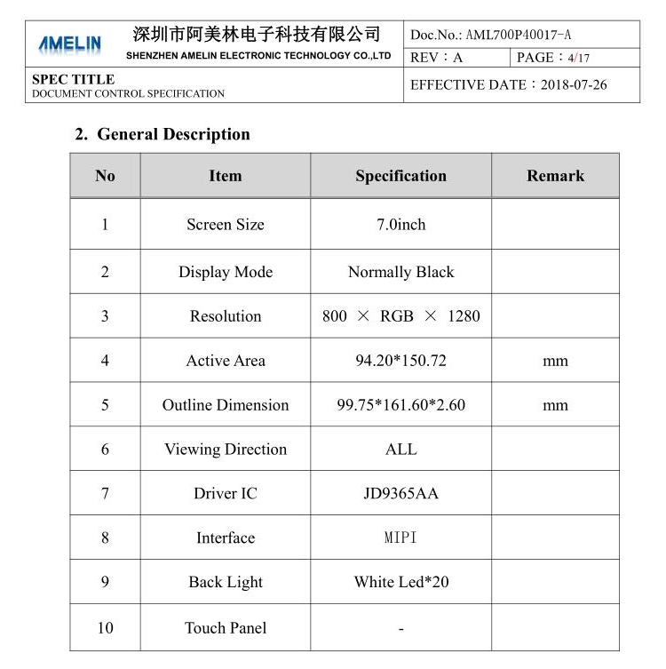 高清7寸IPS显示屏模组高占屏比mipi接口800x1280分辨率LCD