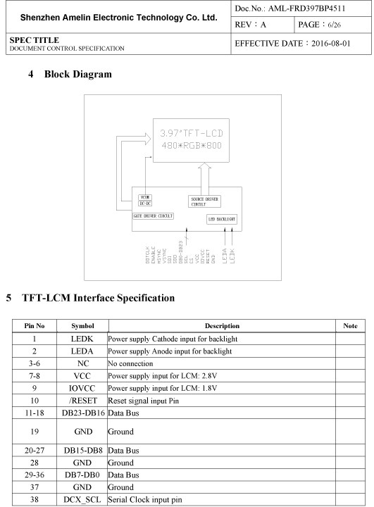 FRD397BP4511 4寸TFT lcd 液晶显示屏 480*800 RGB IPS 电容触摸