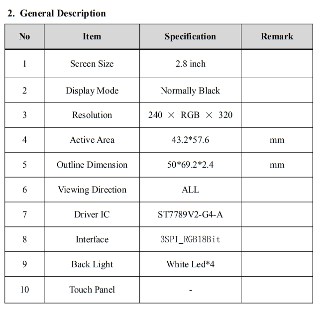 2.4寸TN型液晶屏